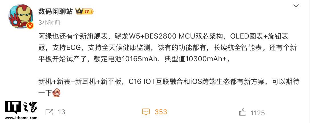 IT之家注意到,该博主同时声称 OPPO 新平板开始试产,并透露该平板额定电池 10165mAh,典型值 10300mAh±,但不支持插卡(不过后续可能会考虑 eSIM)。未来 OPPO 将采用“新机 + 新表 + 新耳机 + 新平板”战略,预计四大产品将一齐登场。